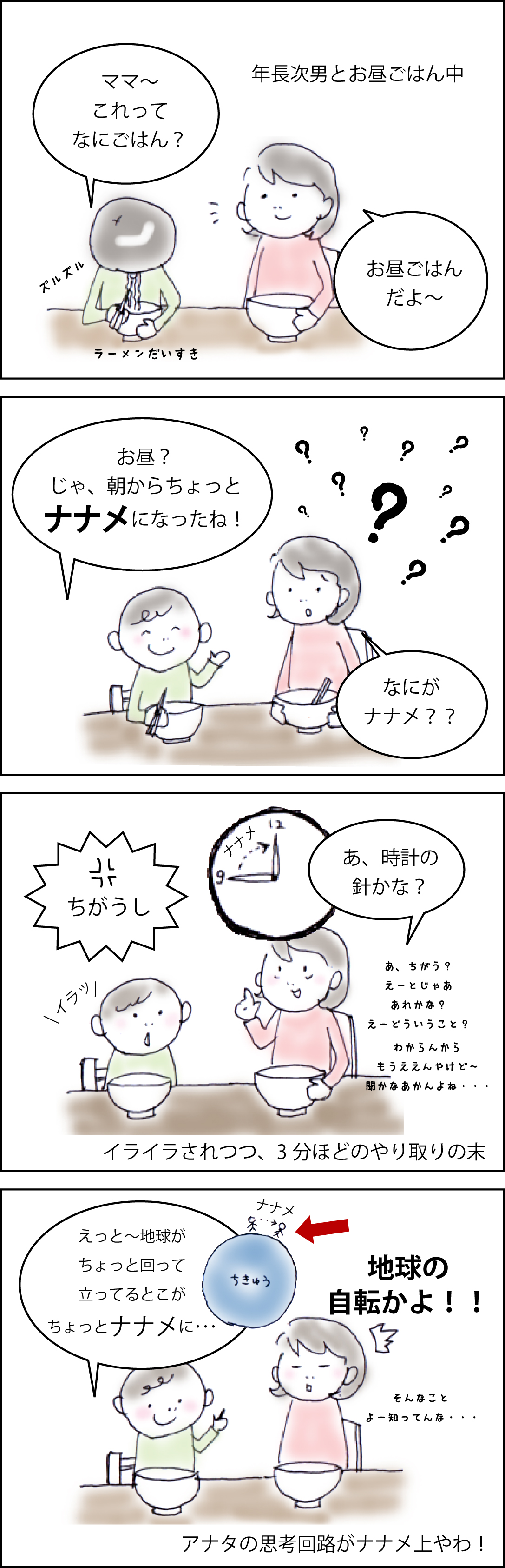 次男の言っていることがわからず 「こういうこと?」と言っても違うとイラっとされ 「ごめん~おかあさんわからん」とあきらめるとイラっとされ イラっとされまくったあげく まさかの『地球の自転』・・・!
