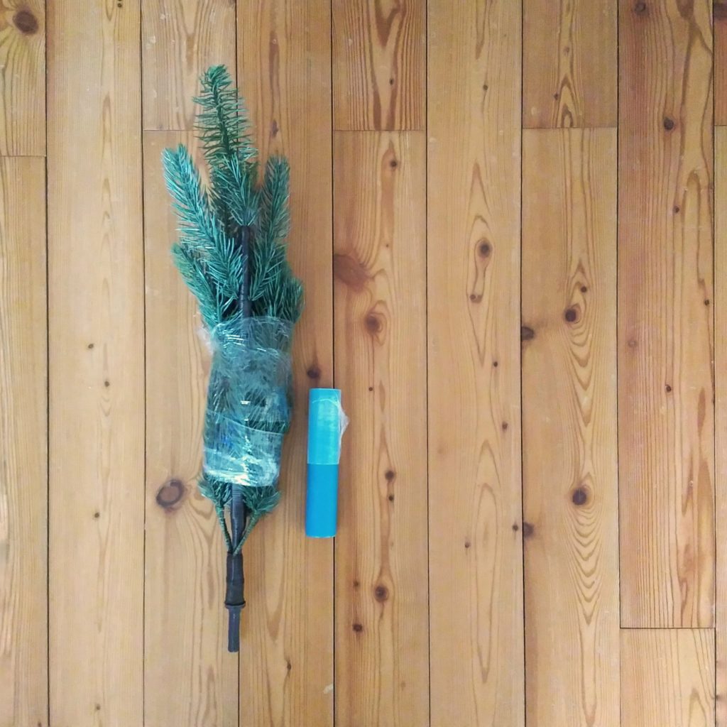 ツリーを梱包用フィルムでコンパクトに