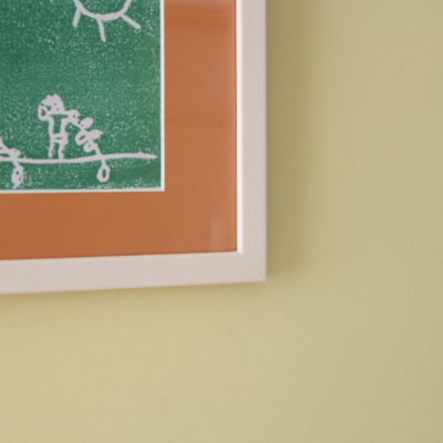子どもの絵を自分で額に入れて