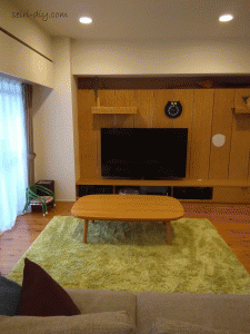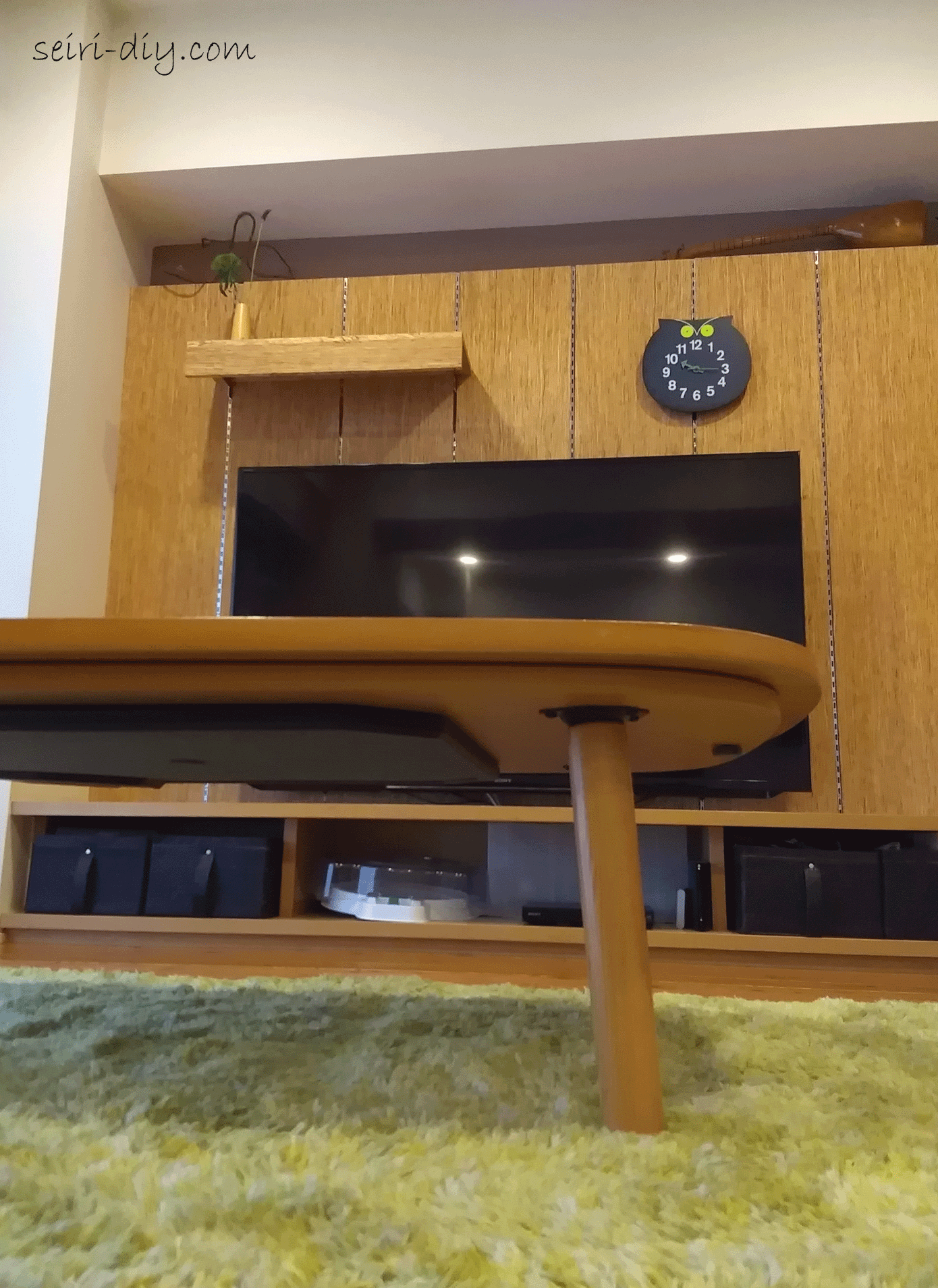 息子はたいてい、ソファと机の間に座るか寝転んでいます。