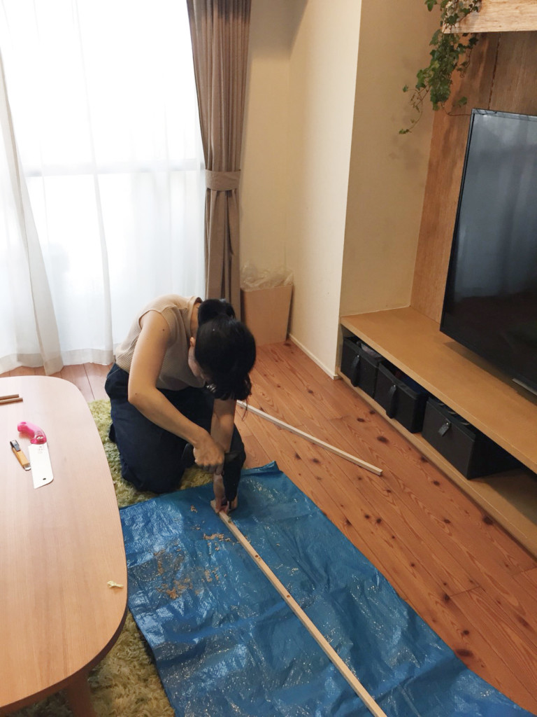 のこぎり、ドリル(ドリルビット木工用9ミリ)、