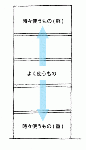 よく使うものほど、真ん中の高さに。