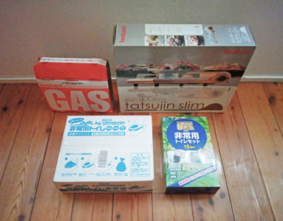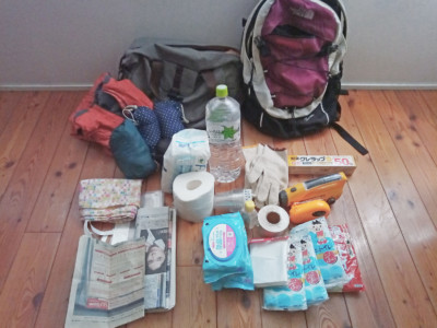 新聞紙、トイレットペーパー、サニタリー用品、軍手、粘着テープ