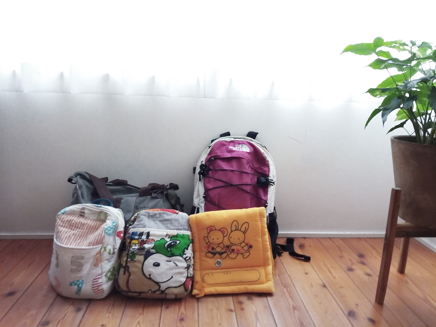 (子どもリュックは、子どもたちが小さいときに私の作ったもので捨てられないのです…)