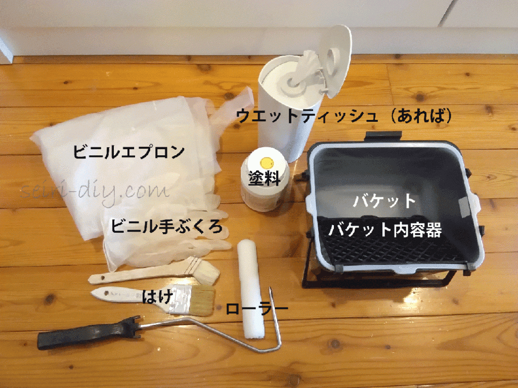 <バケット本体、ハケ、ローラーの柄>