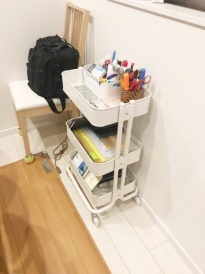 ダイニングテーブルまわりの、置き場所に困っておられた文具類や書類。