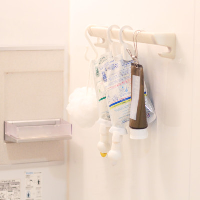 片手にスポンジ、片手にシャワーを持って掃除できるので