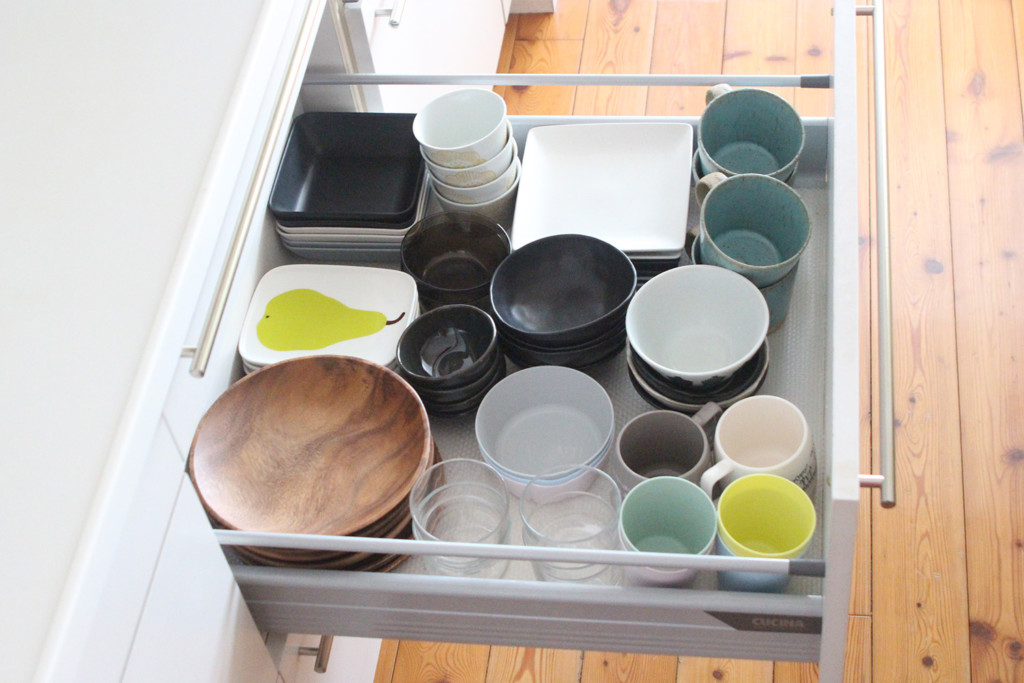 お皿は重ねて収納していますが、違う種類のものは重ねないようにしています。