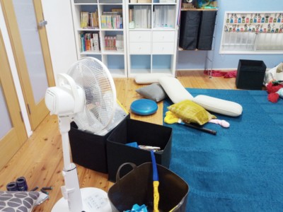 おもちゃで遊ぶのに散らかるのは当たりまえ。