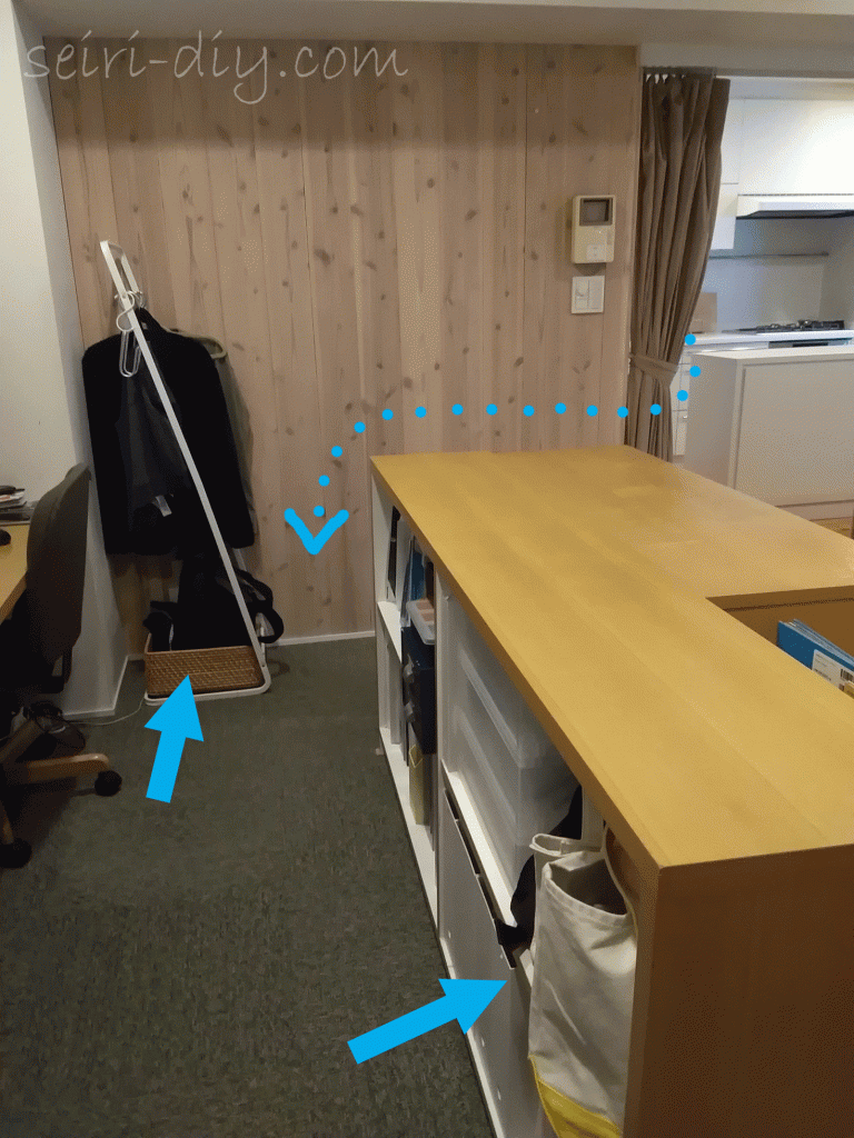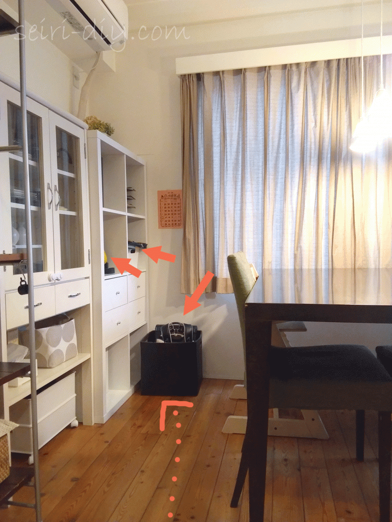 そこでバッグの定位置をつくりました。