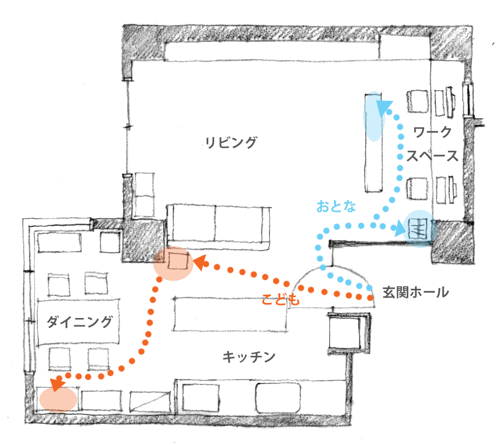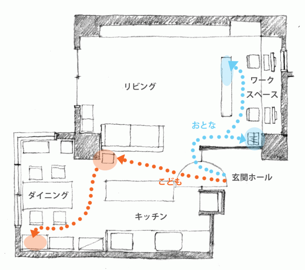 点線は帰宅後の動きです。