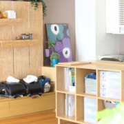 仕切りにしていた棚(IKEAのKALLAXの2×4マス)は高さがあり、縦に置くと倒れると危ないから横向きにして置こう、とそこだけ提案して変えました。