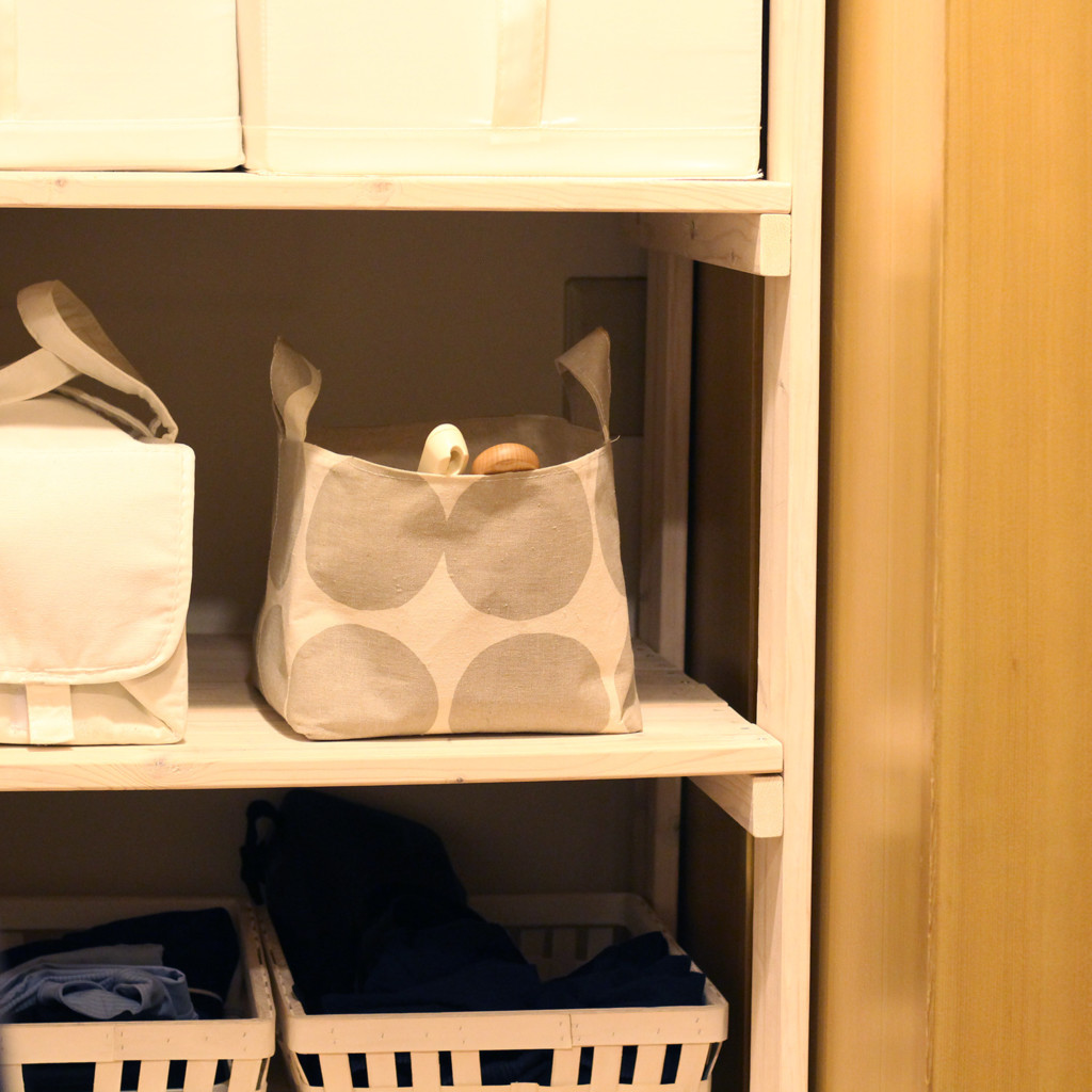自立しない柔らかいトートバッグは、吊り下げて収納として使うといいと思います。