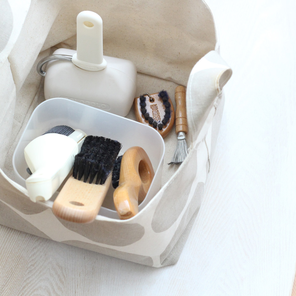 こちらはクローゼットでお手入れ用品を収納しているトートバッグ。