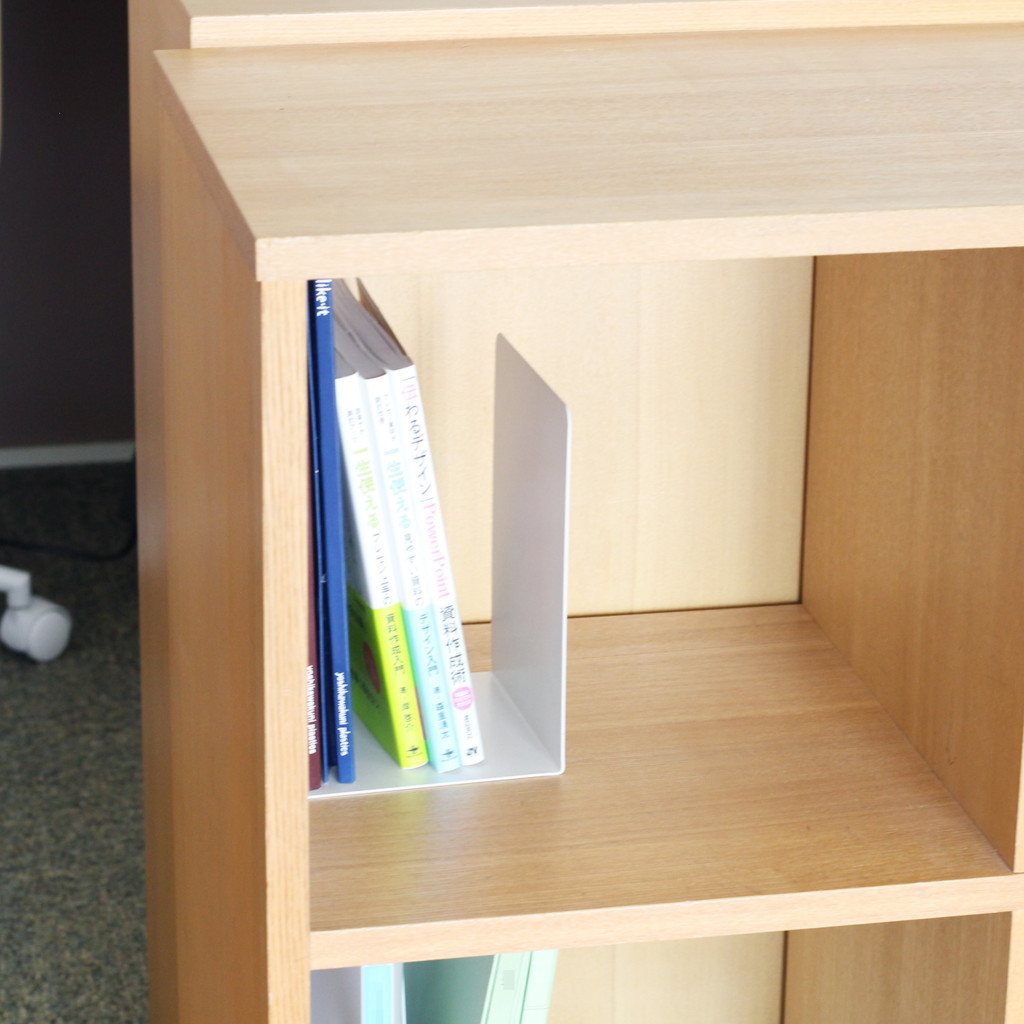 よく出し入れする資料や本には、ブックエンドか仕切りスタンドが便利です。
