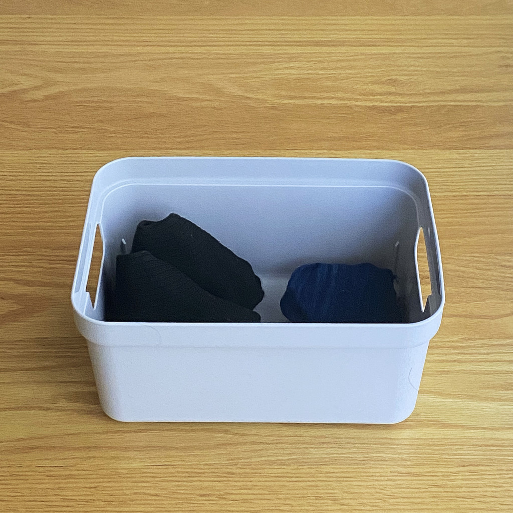 プラスチックの収納ケースとしてはあんまり安い方ではありませんが、13Lの大きいサイズもあるこちらに決定。サイズバリエーションがあると使いやすいなと思います。