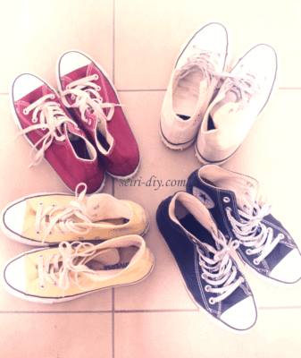 同じスニーカーの色ちがいが4足。