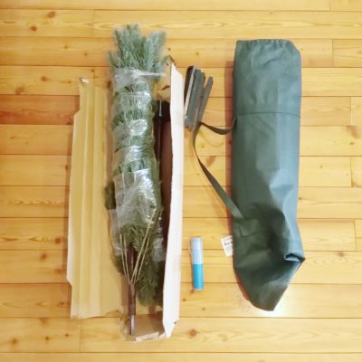 ツリーを梱包用フィルムでコンパクトに